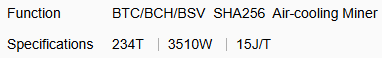 (1-1) The hashrate value, and power efficiency on wall are all typical values. The actual hashrate value fluctuates by ±3%, and the actual power efficiency on wall fluctuate by ±5%.